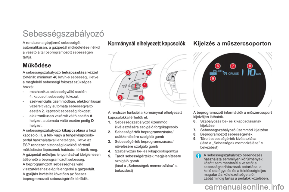 Lábát mindig tartsa a pedálok közelében. A beprogramozott információk a műszercsoport