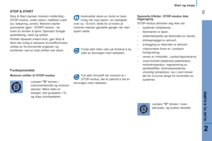 Fjernbetjening 21Nøkkel 23Personlig kodekort 25Alarm 26For- og bakdører 27Lasterom 29Instrumentpaneler 30Kontrollamper 31Drivstoffmåler 38Temperaturindikator 38Vedlikeholdsindikator 39Styrkeregulering av instrumentbordbelysning39Girkasse og ratt 40Start og stopp 41Bakkestartfunksjon 42Stop & Start 43
