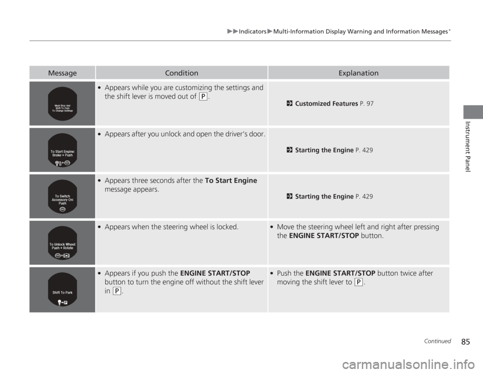 uuIndicators uMulti-Information Display Wa rning and Information Messages