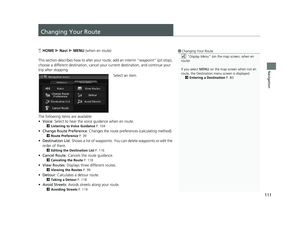 Changing Your Route 111 Changing Your Destination 120 Resuming Your Trip 123