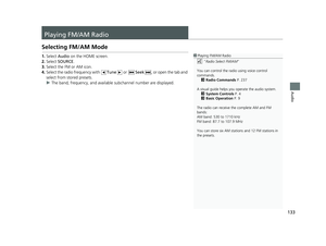 2Audio P. 125Audio System 126 Audio Remote Controls 128 Audio Settings 131 Playing FM/AM Radio 133