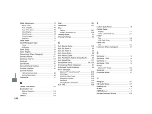 2Bluetooth ® Han dsFreeLink® P. 167Bluetooth® HandsFreeLink® 168 Text Message/E-mail 192HondaLink Assist 195