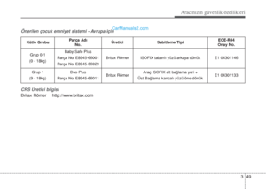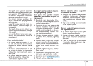 Not: Aracın sonraki sahiplerinin de kılavuzda yer alan bilgilere gereksinim duyacaklarını göz önünde bulundurarak, aracınızı satarken,