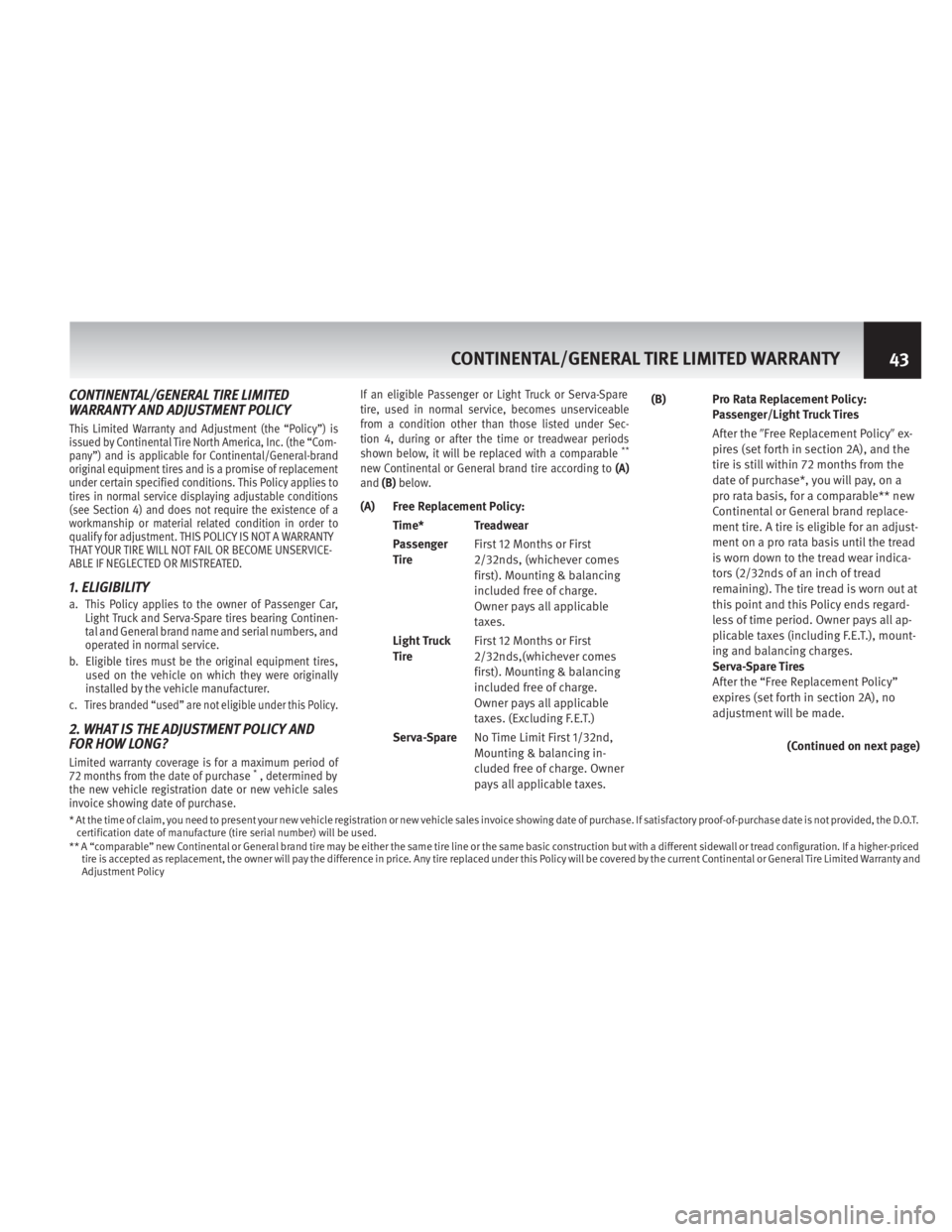 44CONTINENTAL/GENERAL TIRE LIMITED WARRANTY