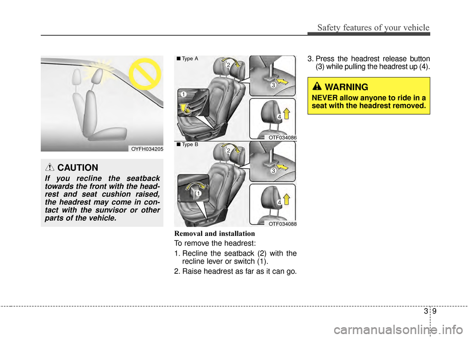 (3) while pulling the headrest up (4).