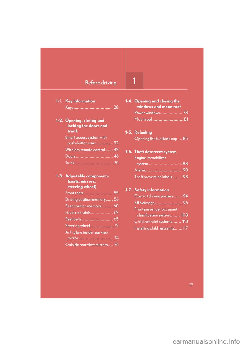 1-6. Theft deterrent system Engine immobilizer system ........ 88