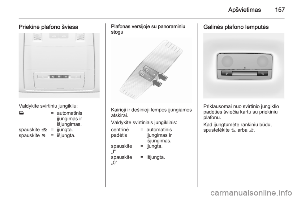 „0“=išjungta.Galinės plafono lemputės
