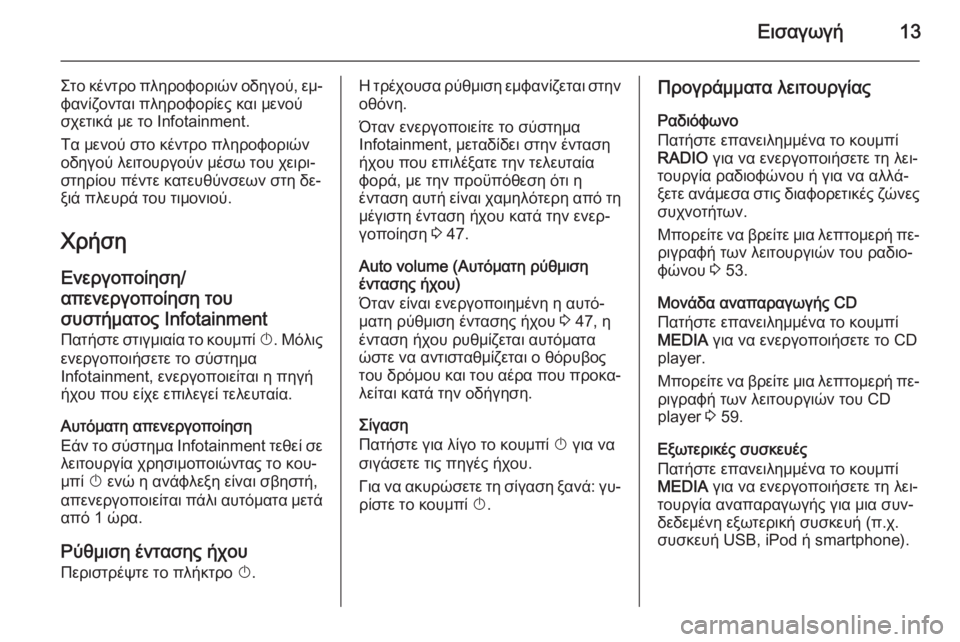 Ενεργοποίηση του συστήματος Infotainment .............................. 13