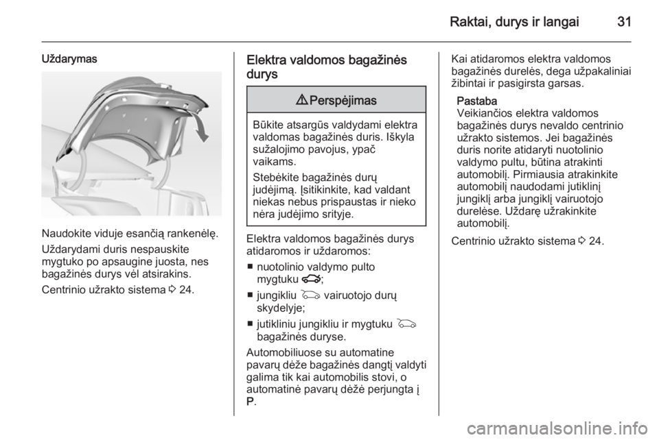 valdomas bagažinės duris. Iškyla sužalojimo pavojus, ypač