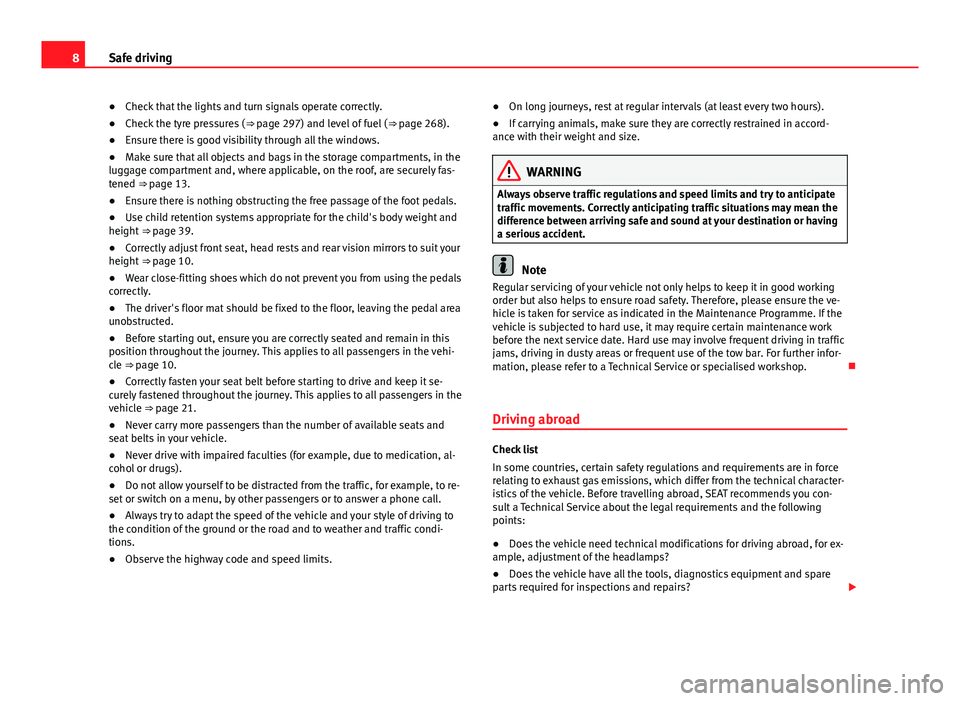 istics of the vehicle. Before travelling abroad, SEAT recommends you con-