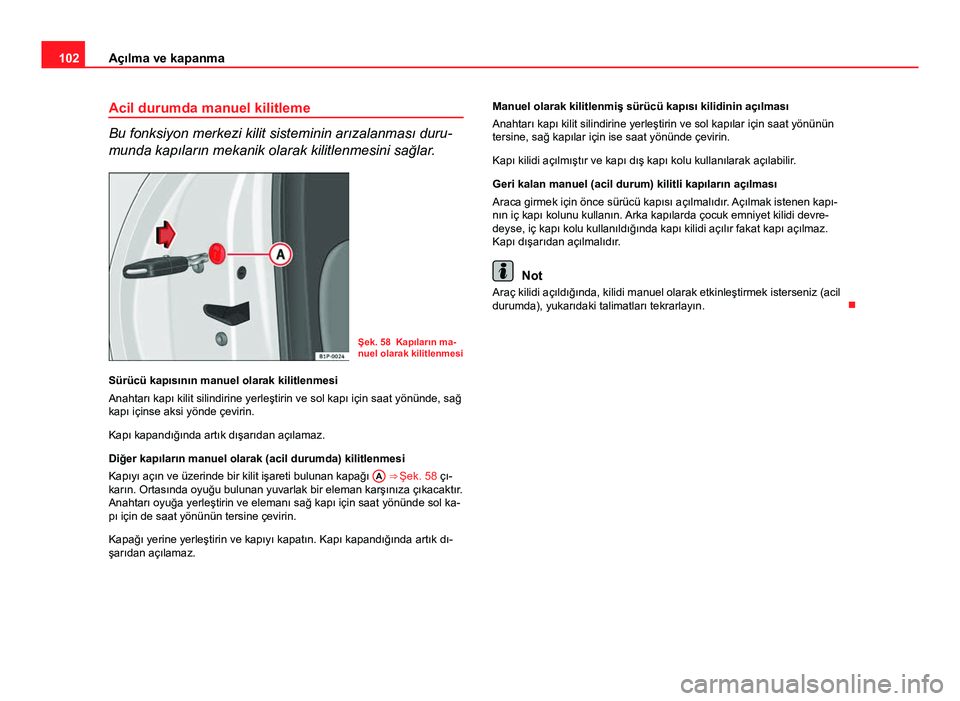 Şek. 62 basın ve tüm kapılar veya bagaj kapağını ki-