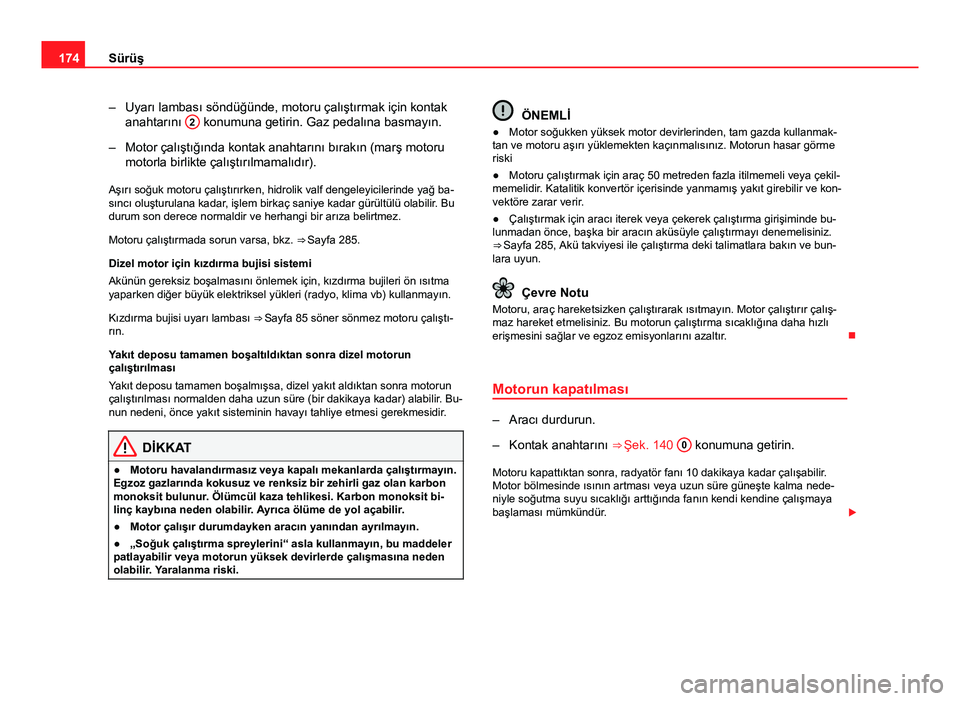 Kızdırma bujisi uyarı lambası ⇒ Sayfa 85 söner sönmez motoru çalıştı-