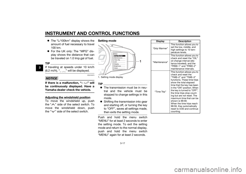 MENUGrip WarmerMaintenanceTime TripUnitDisplayBrightnessClockBrightness