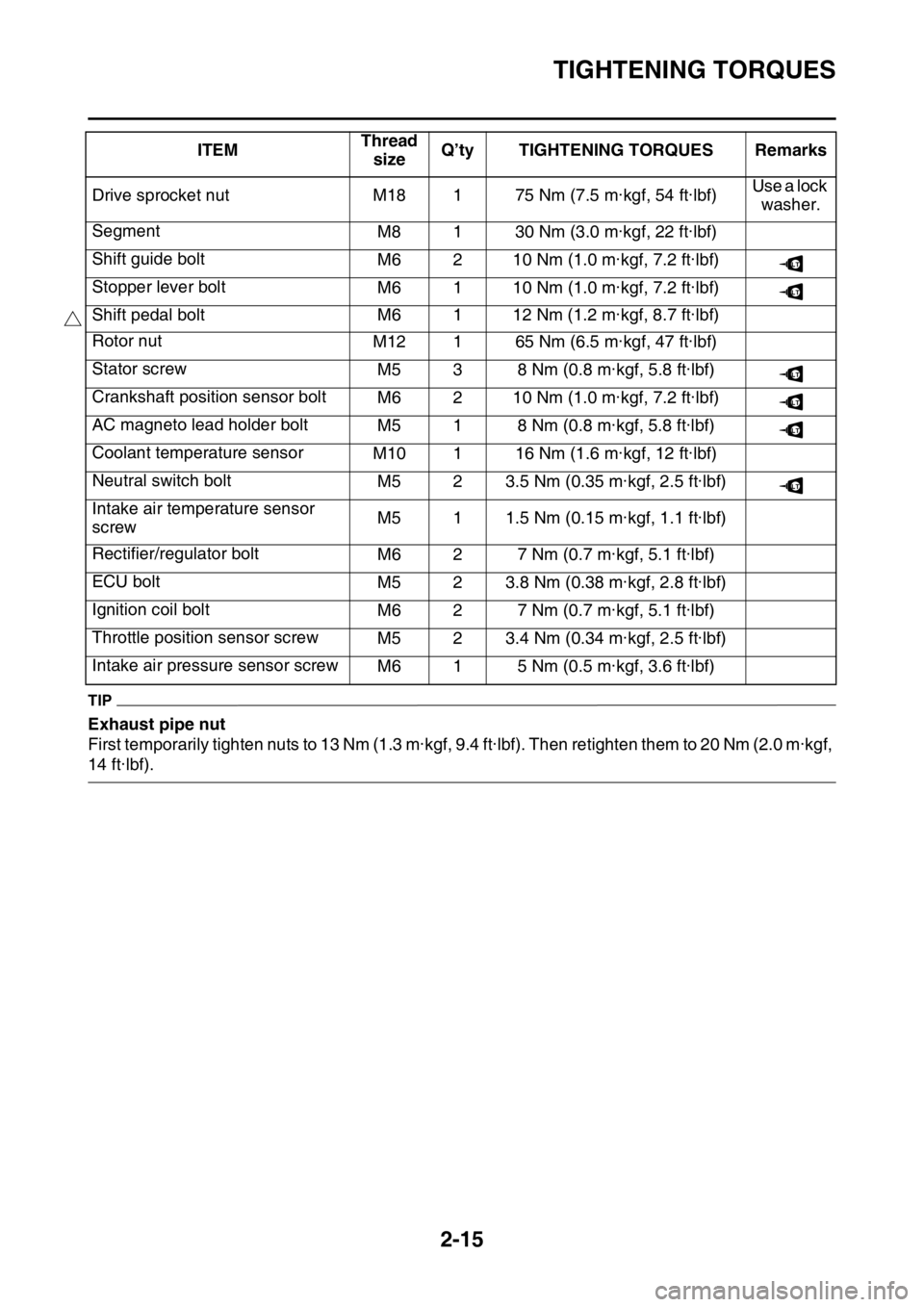 6 Nm (0.6 m·kgf, 4.3 ft·lbf)