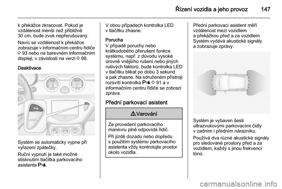parkovacího asistenta.■ Pokud zařazen převodový stupeň pro jízdu dopředu nebo neutrál,