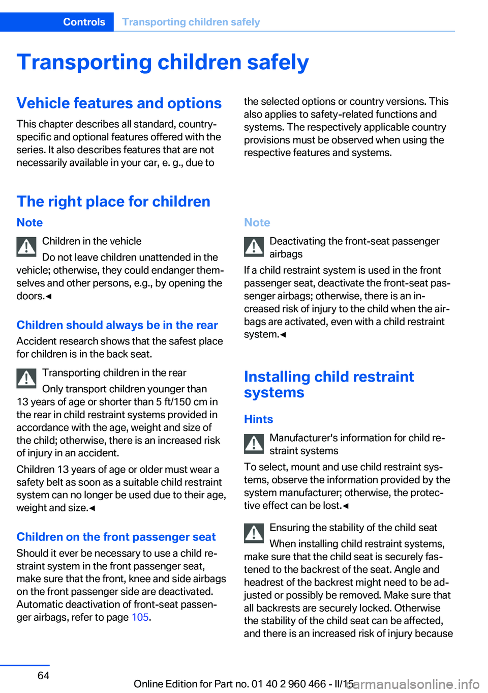 Transporting children safelyVehicle features and optionsThis chapter describes all standard, country-