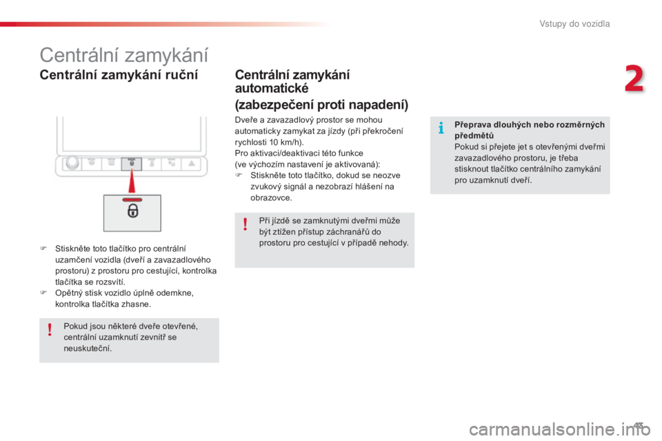 Systém umožňuje centrální odemykání a zamykání vozidla prostřednictvím dveřního zámku nebo dálkového ovladače.