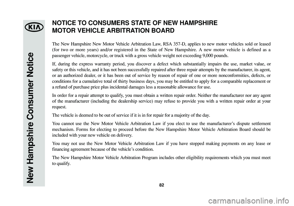 KIA SEDONA 2015  Warranty and Consumer Information Guide 82New Hampshire Consumer Notice