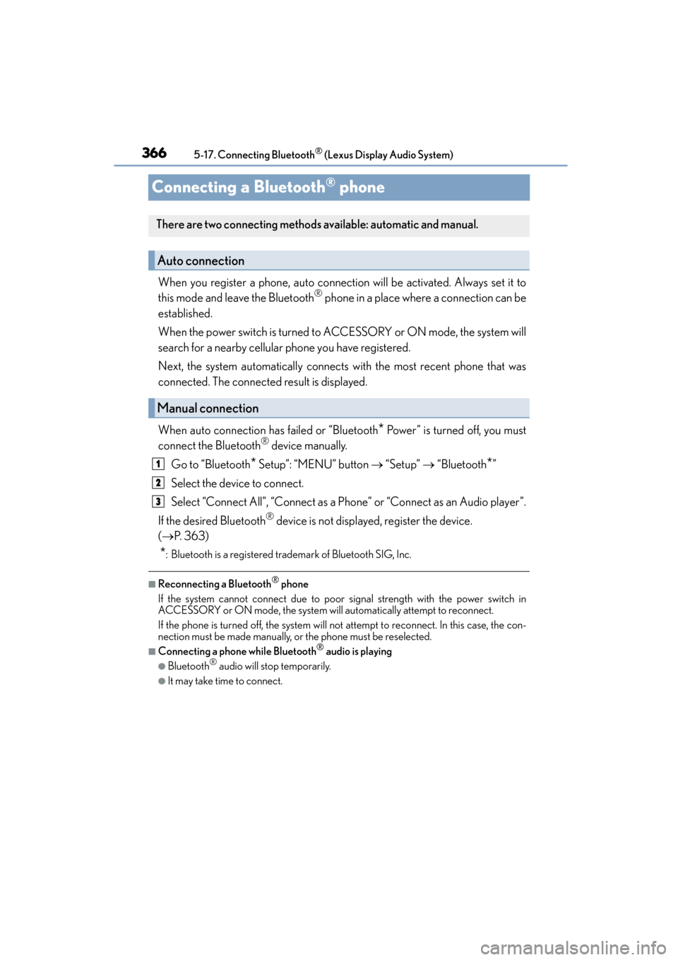 3625-17. Connecting Bluetooth® (Lexus Display Audio System)