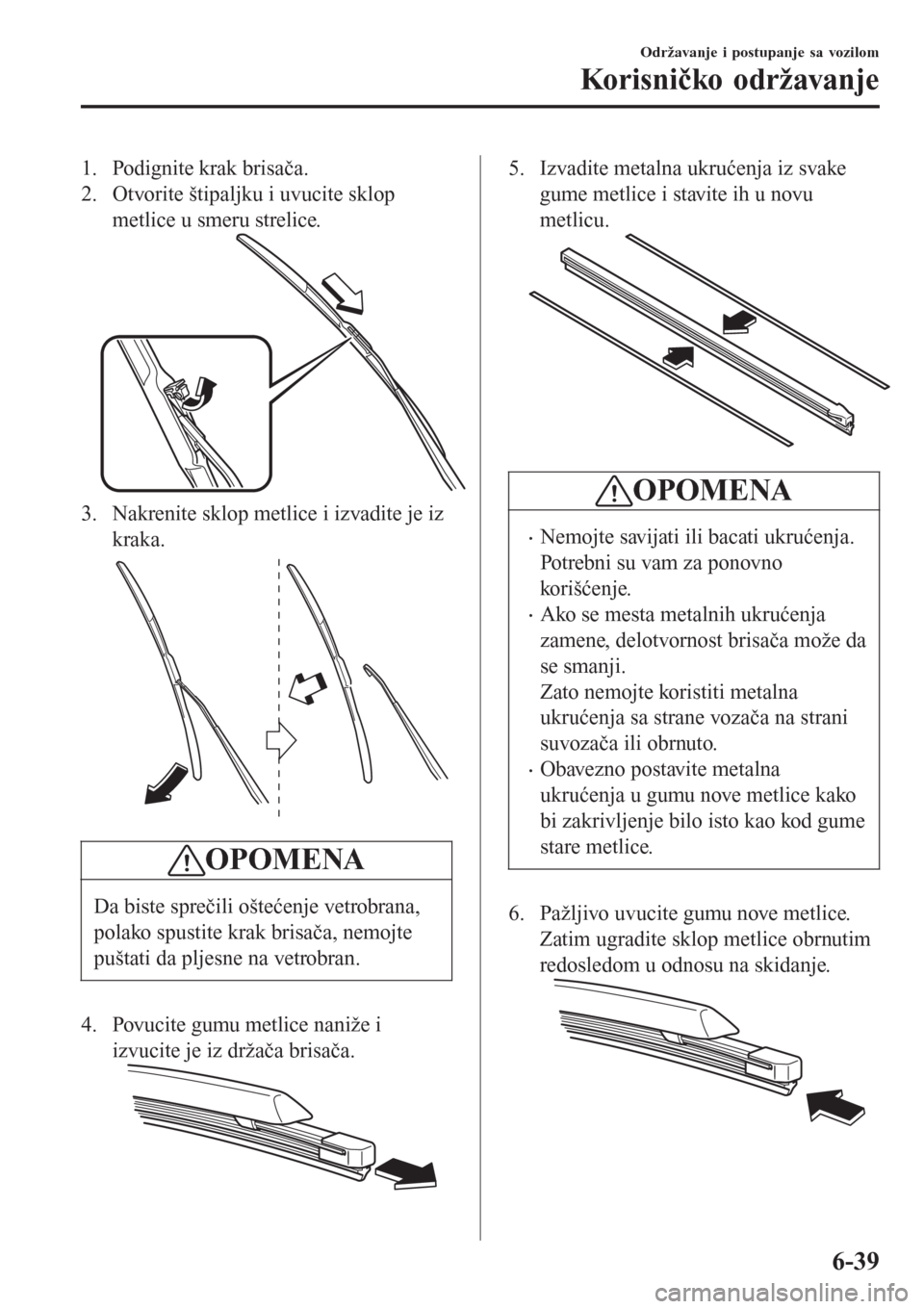 brisača i drugih komponenti, nemojte