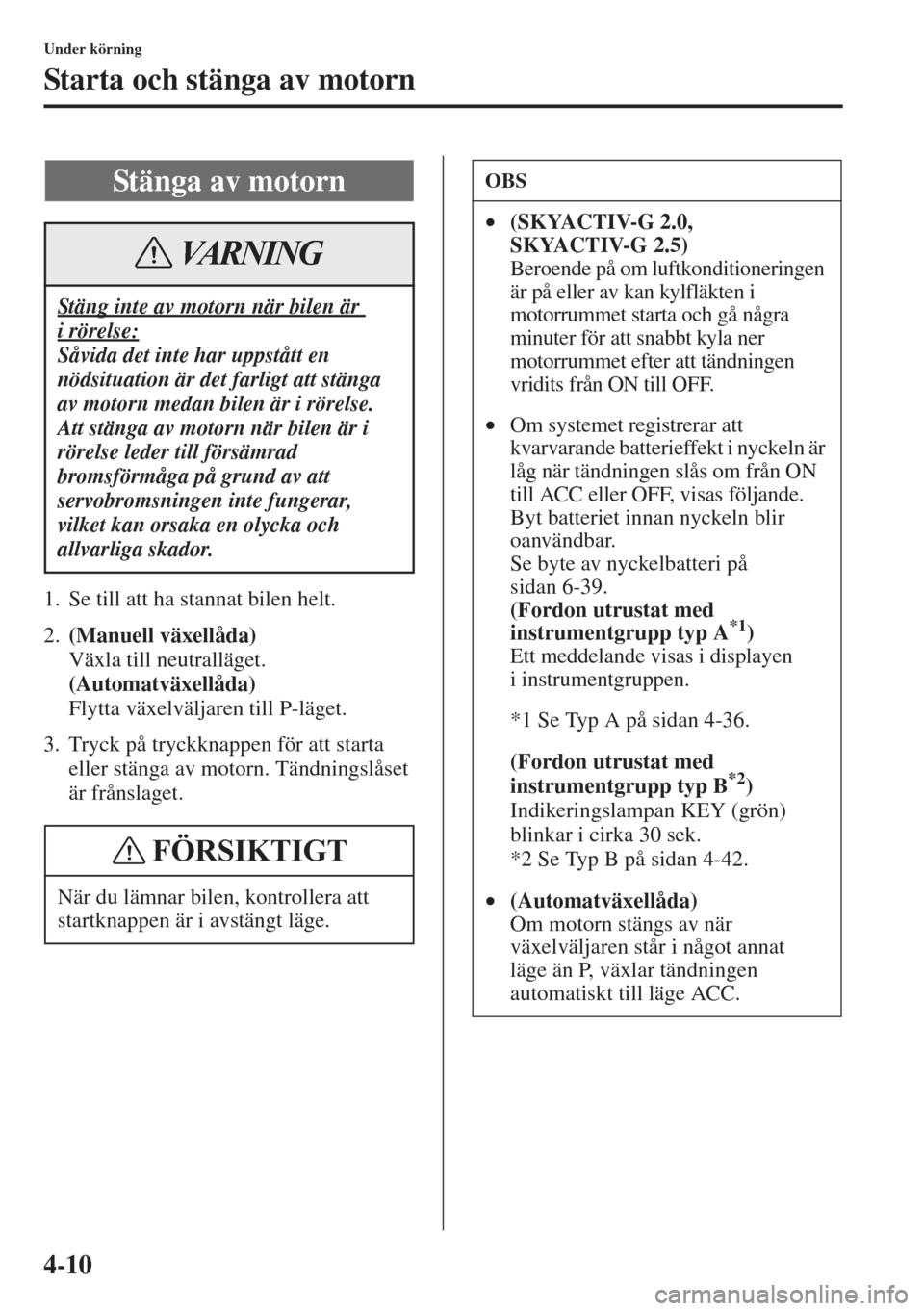 Starta och stänga av motorn .....................4-2