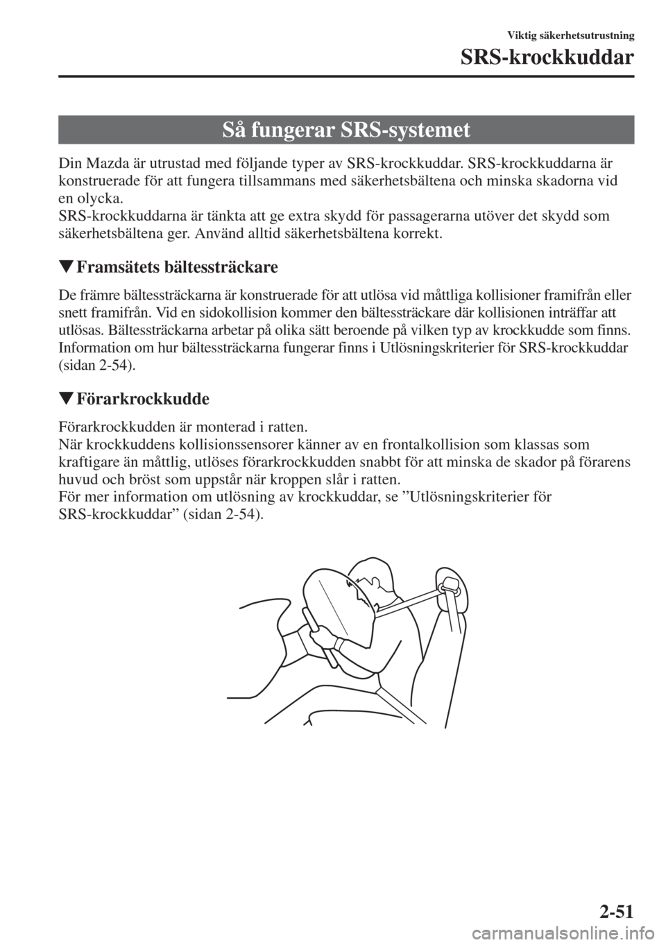 Din Mazda är utrustad med följande typer av SRS-krockkuddar. SRS-krockkuddarna är