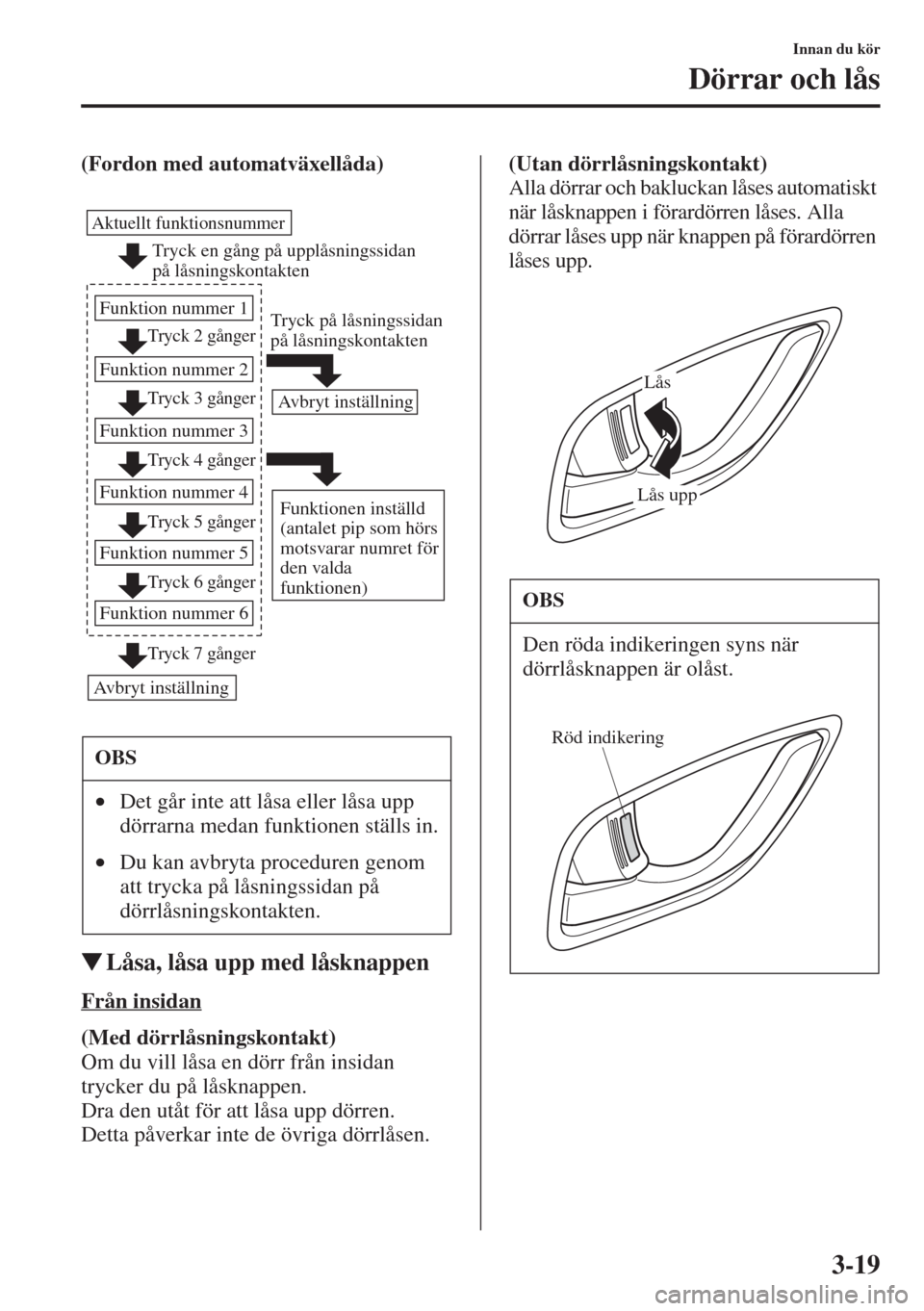 •Alla dörrar och bakluckan kan inte