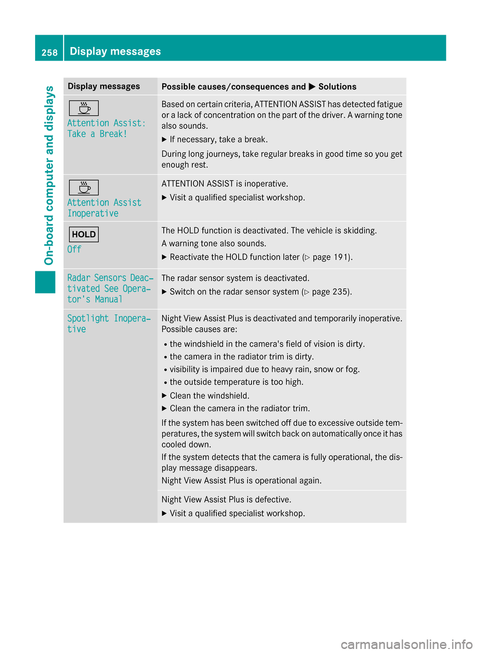 or warnings from certain systems in the mul- tifunction display. You should therefore make