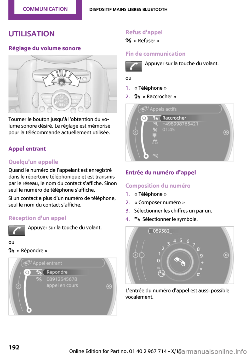 Seite 192COMMUNICATIONDispositif mains libres Bluetooth192