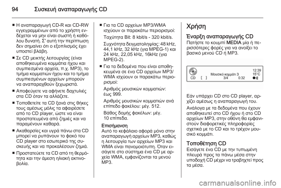 ■ Η αναπαραγωγή CD-R και CD-RWεγγεγραμμένων από το χρήστη εν‐δέχεται να μην είναι σωστή ή καθό‐