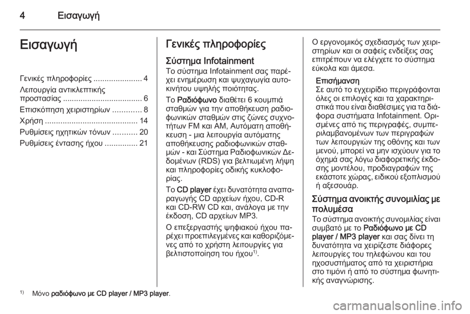 8ΕισαγωγήΕπισκόπηση χειριστηρίωνΧειριστήρια συστήματος Ιnfotainment - Ραδιόφωνο με CD player