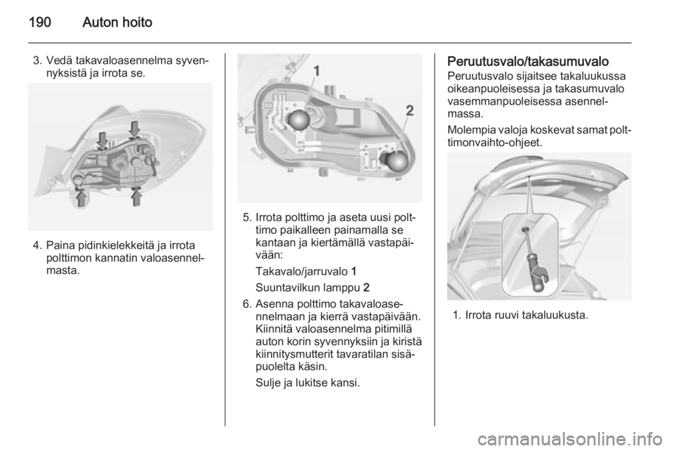 3. Vedä takavaloasennelma syven‐nyksistä ja irrota se.