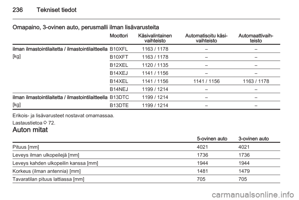 Tekniset tiedot235Auton paino