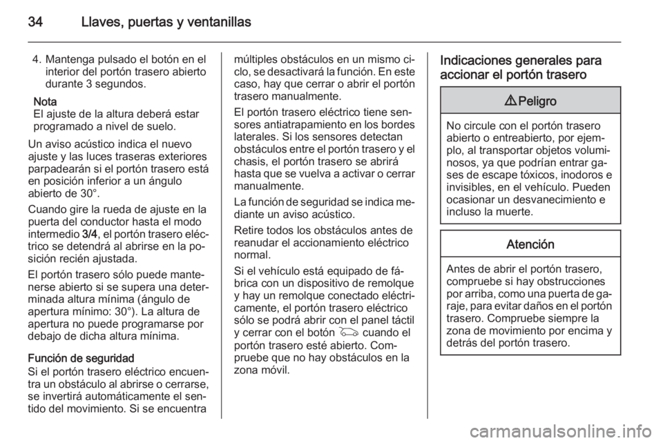 accionar el portón trasero9 Peligro