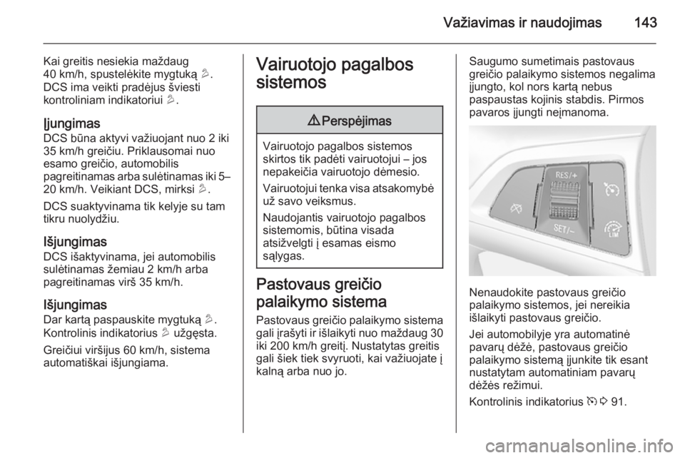Įjungimas DCS būna aktyvi važiuojant nuo 2 iki