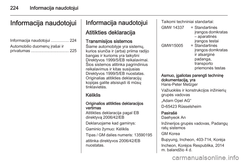 224Informacija naudotojuiInformacija naudotojuiInformacija naudotojui...............224