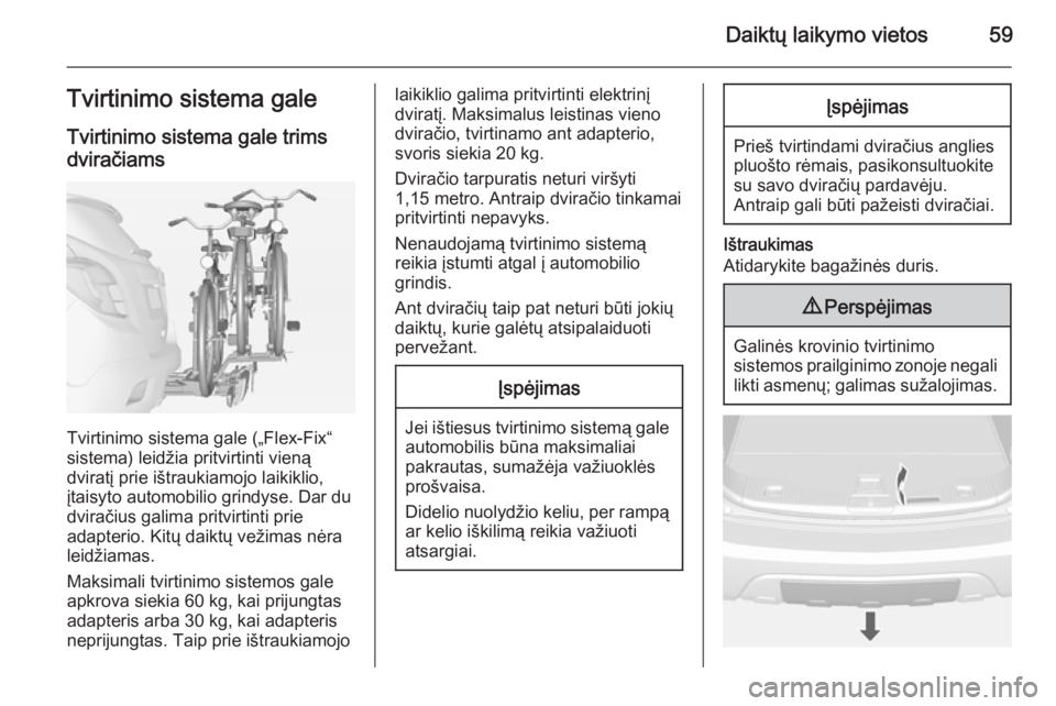 Daiktų laikymo vietos59Tvirtinimo sistema galeTvirtinimo sistema gale trimsdviračiams