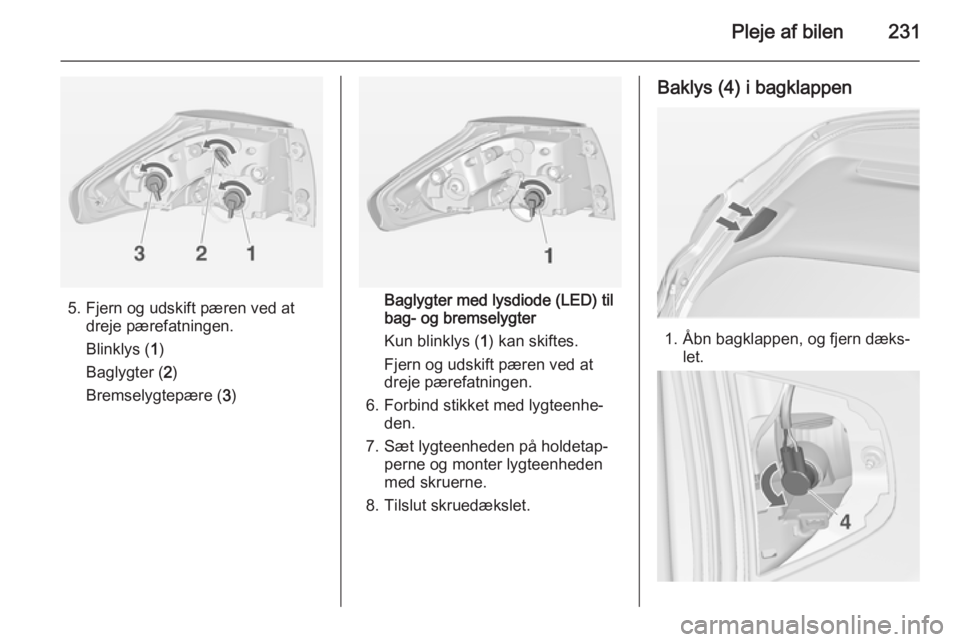 234Pleje af bilenInstrumentlysFå pærerne udskiftet på et værksted.Elektrisk system