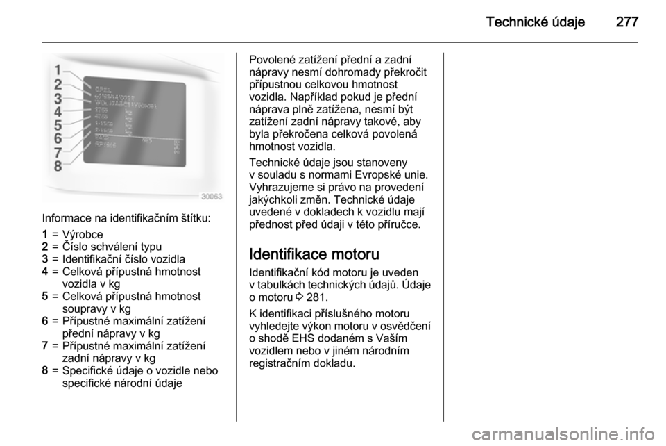 Údaje o vozidle .......................... 278Identifikace vozidla