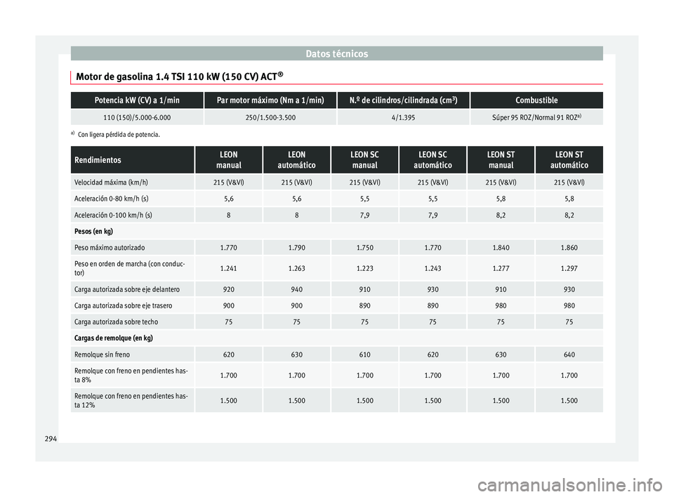 Motor de gasolina 1.4 TSI 110 kW (150 CV) ACT ®Potencia kW (CV) a 1/minPar motor máximo (Nm a 1/min)N.º de cilindros/cilindrada (cm