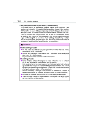 3-3. Indstilling af sæder Forsæder .......................... 123