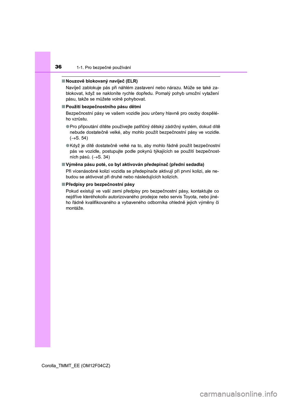 pás ve vozidle, postupujte podle pokynů týkajících se použití bezpečnost-