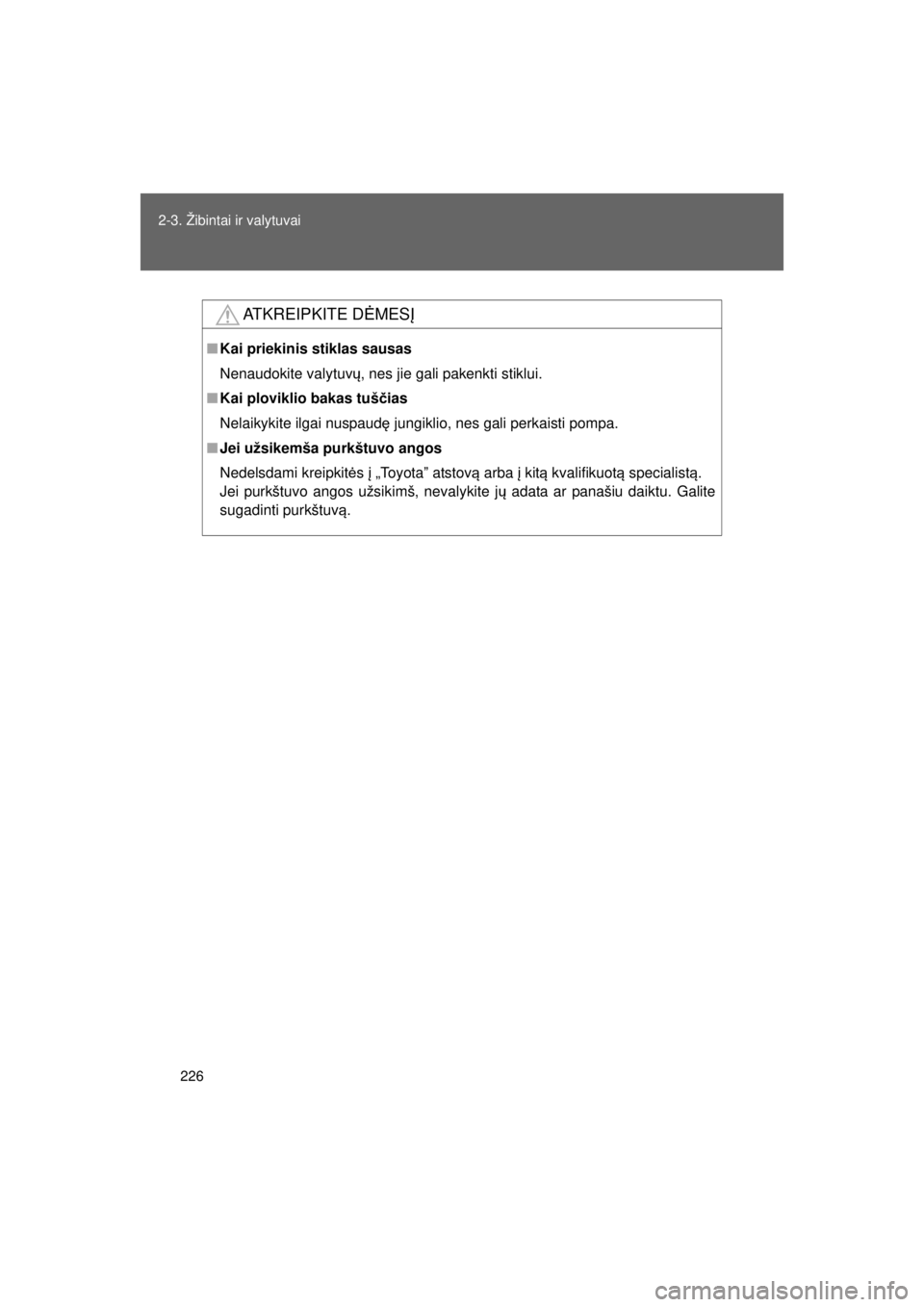 Nedelsdami kreipkit ės į „Toyota ˮ atstov ą arba į kit ą kvalifikuot ą specialist ą.