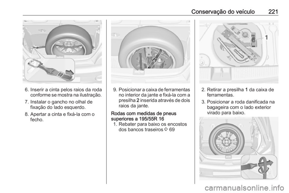 222Conservação do veículo4. Pegar na presilha 1 e passar a