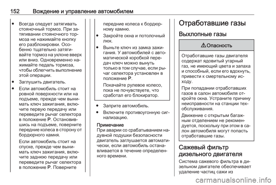 152Вождение и управление автомобилем● Всегда следует затягиватьстояночный тормоз. При за‐