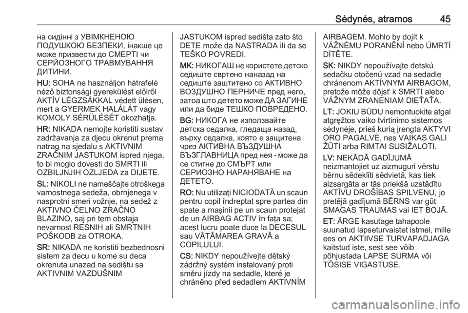 neizmantojiet uz aizmuguri vērstu bērnu sēdeklīti sēdvietā, kas tiek