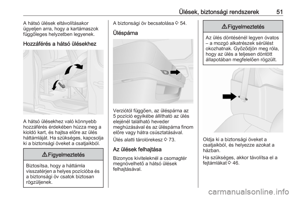 50Ülések, biztonsági rendszerekA visszaállításhoz húzza a kioldókart,emelje fel a háttámlát, majd engedje