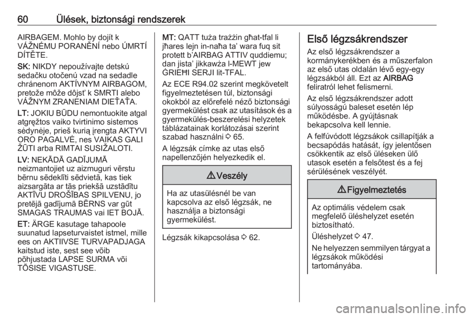 62Ülések, biztonsági rendszerek9Figyelmeztetés