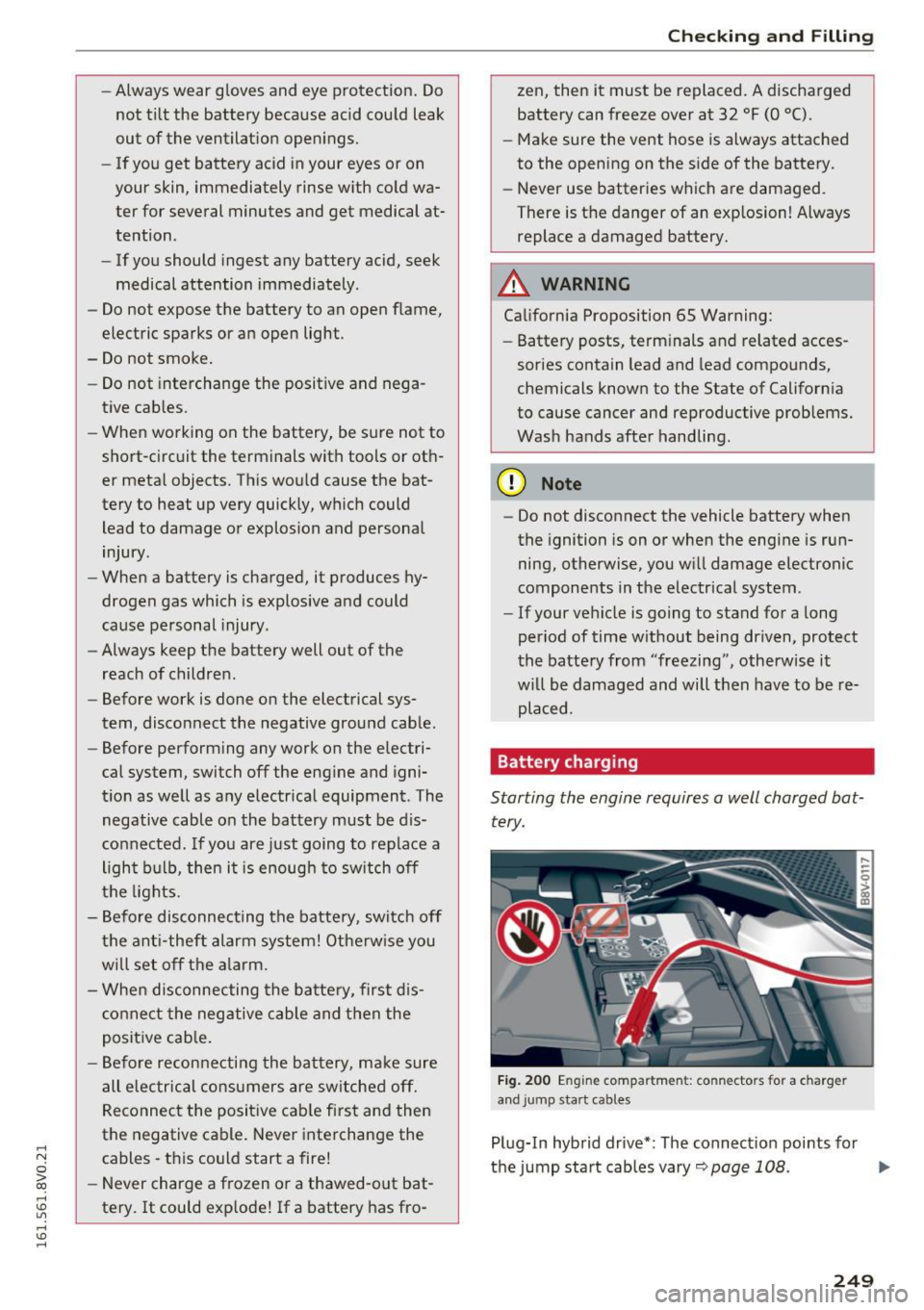 Fig. 200 Eng ine compartmen t: co nnectors fo r a charger