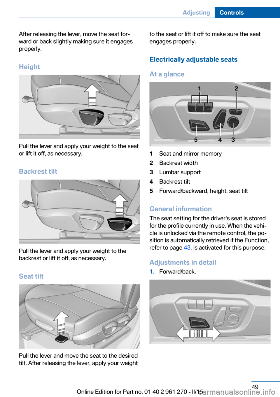 1.Forward/back.Seite 49AdjustingControls49